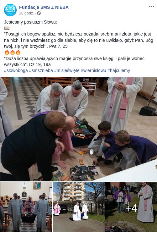 Heine kiedyś powiedział: „Gdzie się pali książki, dojdzie w końcu do palenia ludzi.” A fundacja powinna nazywać sie nie „SMS z Nieba”, tylko „SMS z Psychiatryka”.